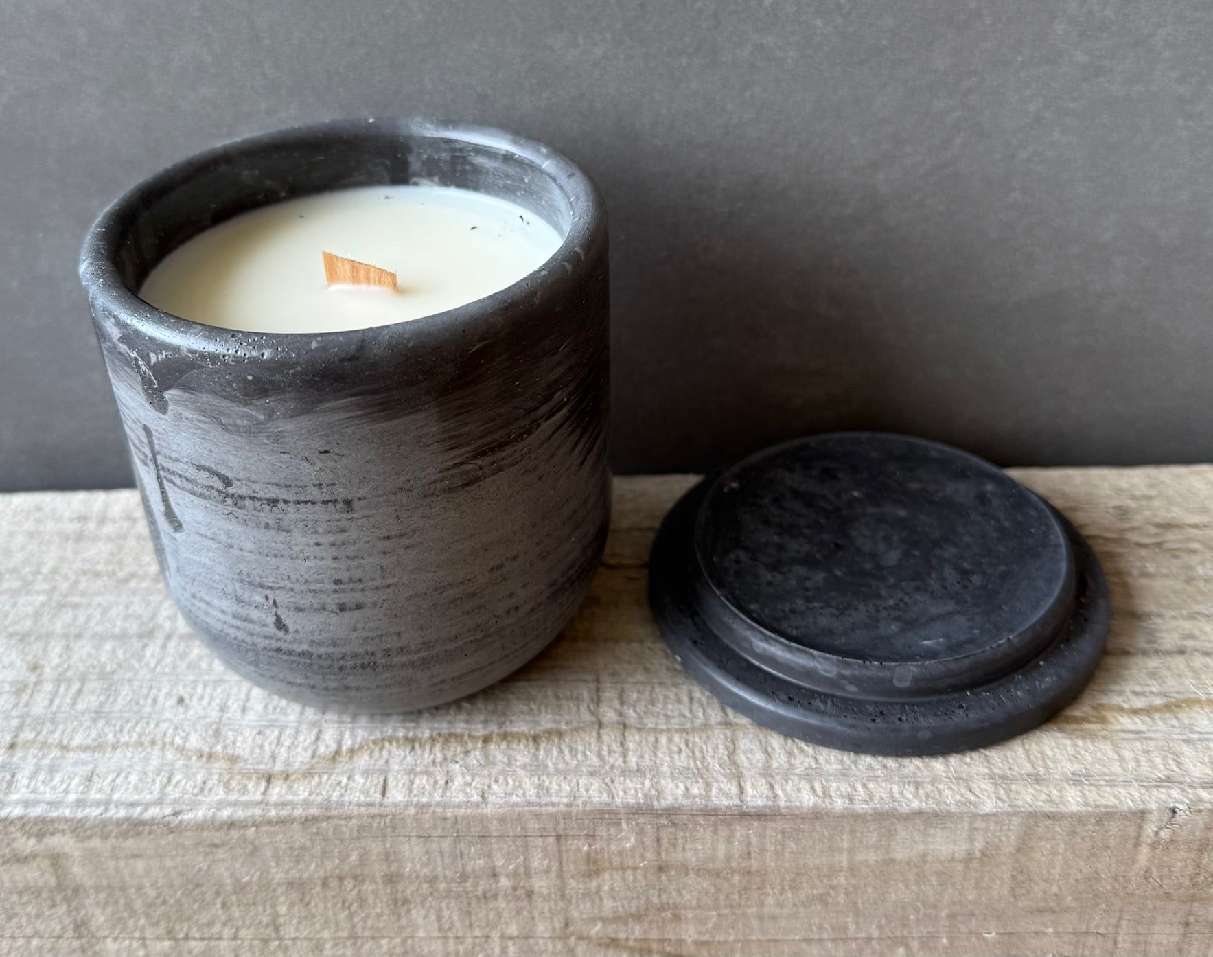 colored concrete candle vessel. made in-house, in Colorado, by my two hands throughout a loving 3-week process. this unique jar can be used for a variety of purposes after you have enjoyed your candle.