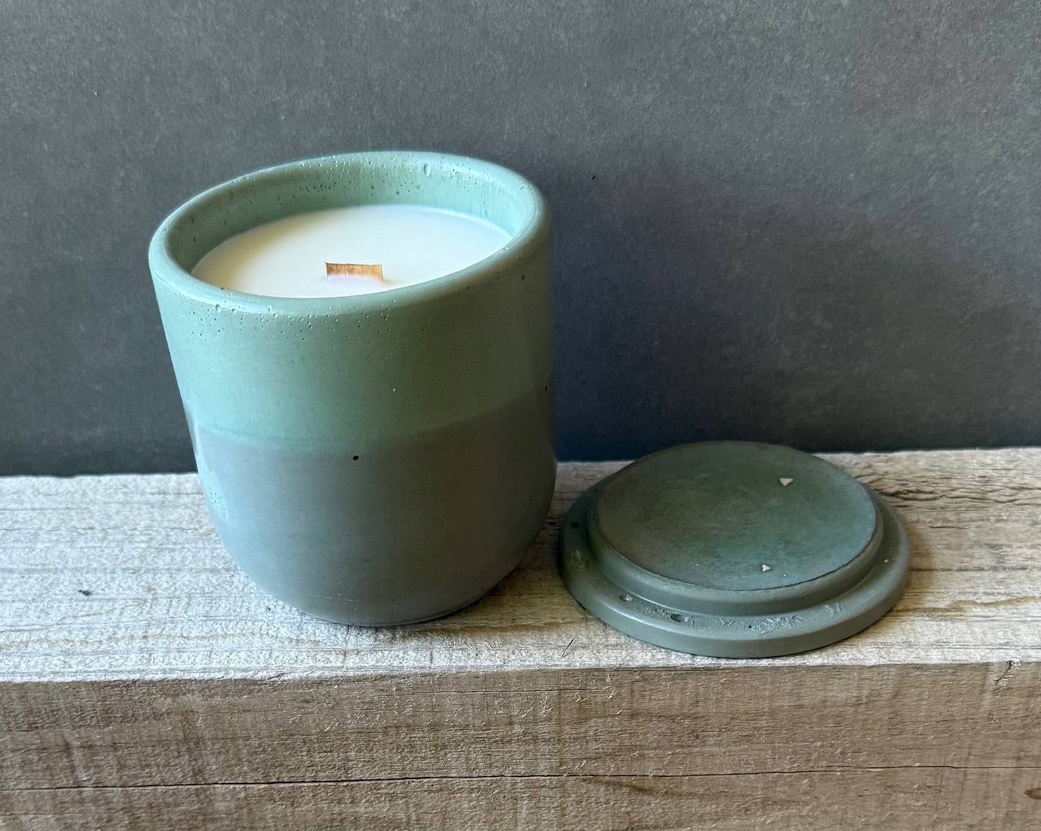 colored concrete candle vessel. made in-house, in Colorado, by my two hands throughout a loving 3-week process. this unique jar can be used for a variety of purposes after you have enjoyed your candle.