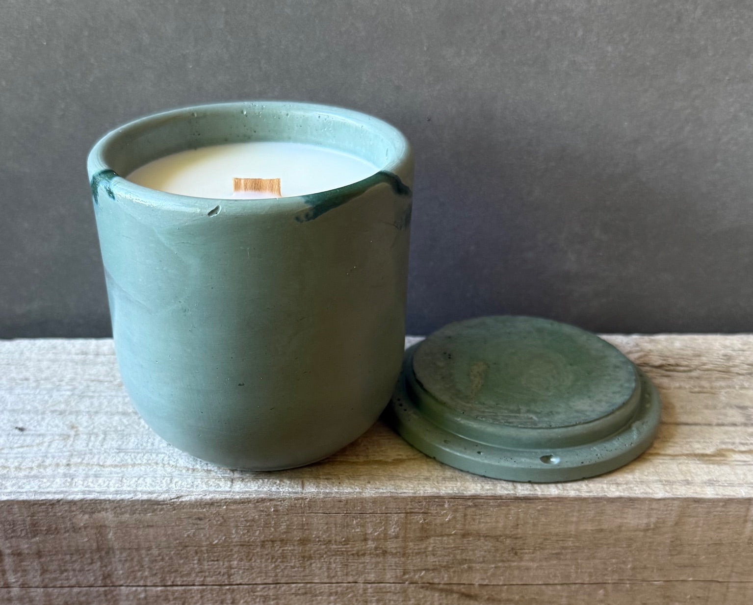 colored concrete candle vessel. made in-house, in Colorado, by my two hands throughout a loving 3-week process. this unique jar can be used for a variety of purposes after you have enjoyed your candle.
